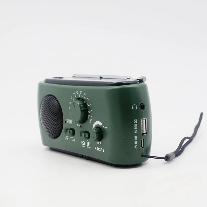 Product Name: Radio odbiornik wielofunkcyjny Am Fm Dynamo Radio na baterie słoneczne potężny Generator korbowy ładowarka zielony