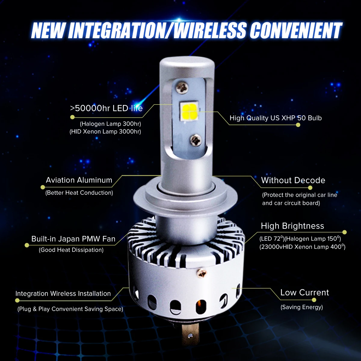 Product Name: 7S H4 H7 Led reflektor samochodowy samochodów żarówka LED XHP 50 40W 8000LM H1 H11 9005 9006 samochodów stylizacji 6500k DC12 24V