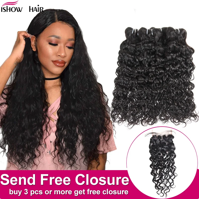Special Offer Ishow indyjskie wiązki fal ludzkich włosów kup 3 lub 4 szt. Wiązki ludzkich włosów uzyskaj bezpłatne zamknięcie włosy w naturalnym kolorze splot wiązek Discount 47% Today!