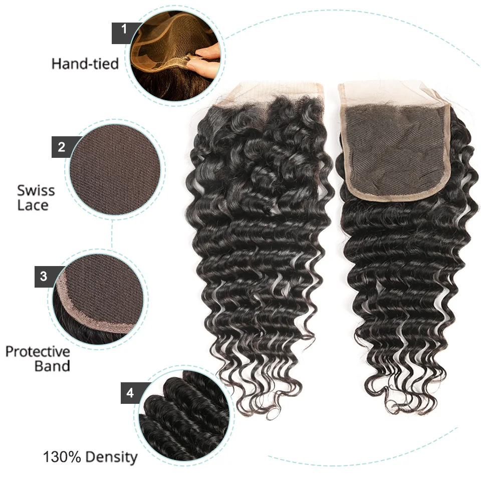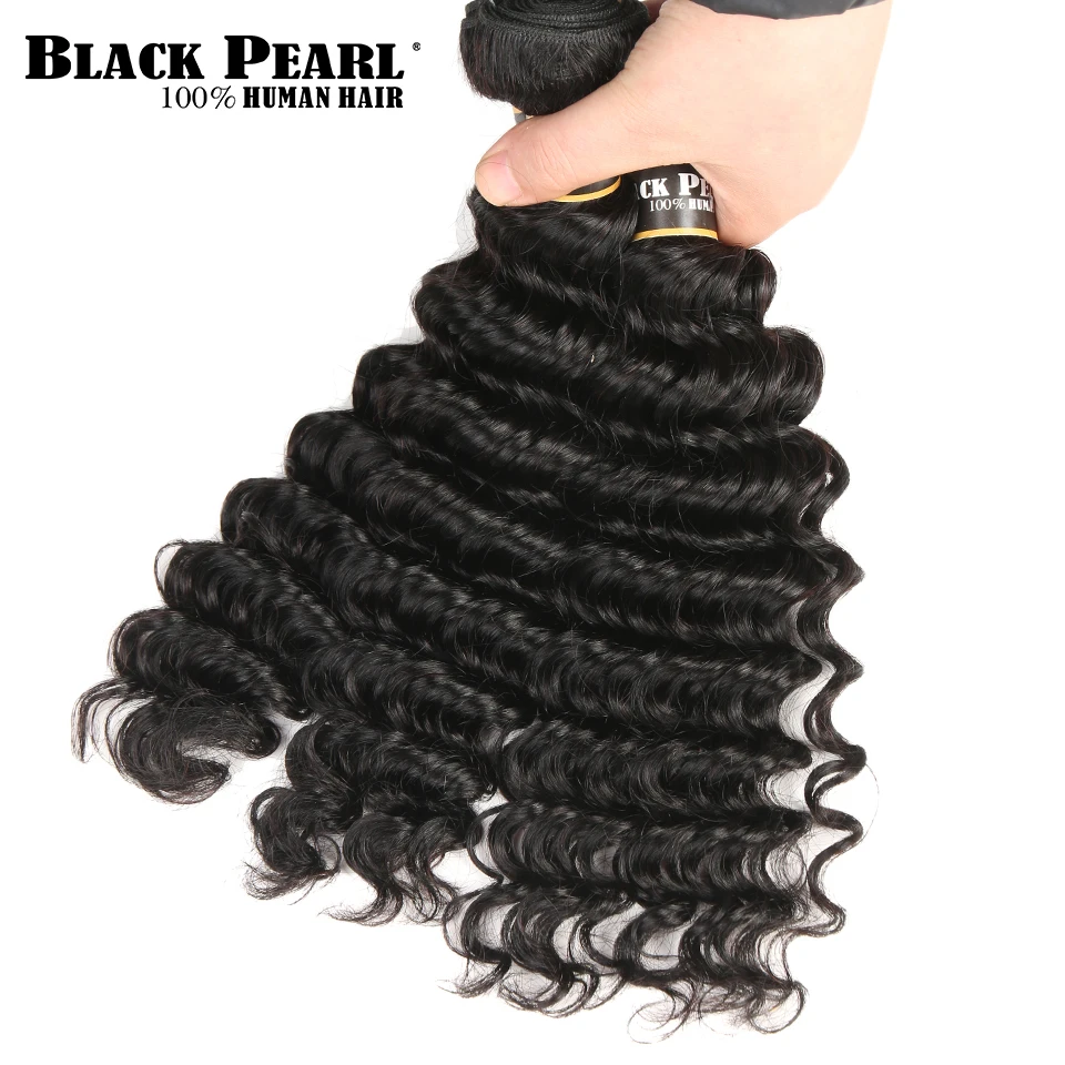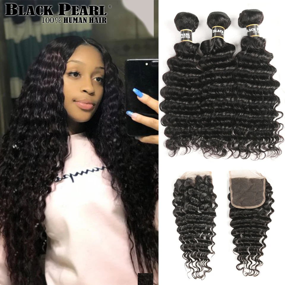 Product Name: Czarne perły z ludzkimi włosami zestawy z głębokimi falami z zamknięciem nierealne włosy z malezji z zamknięciem 3 wiązki z zamknięciem