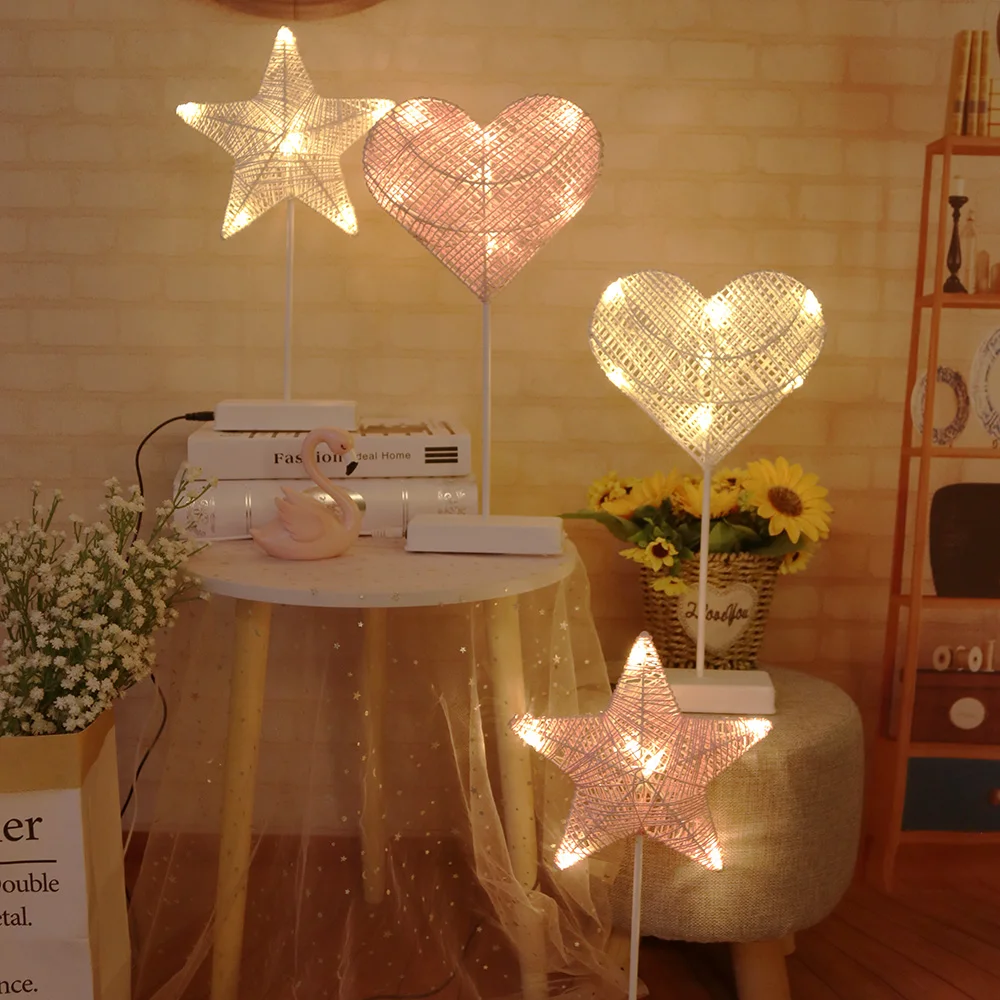 Product Name: Noc lekka kreatywna LED Heart Star kształt drzewa trawa tkane rattanowe zasilanie bateryjne lampka nocna prezent światła do dekoracji na przyjęcie