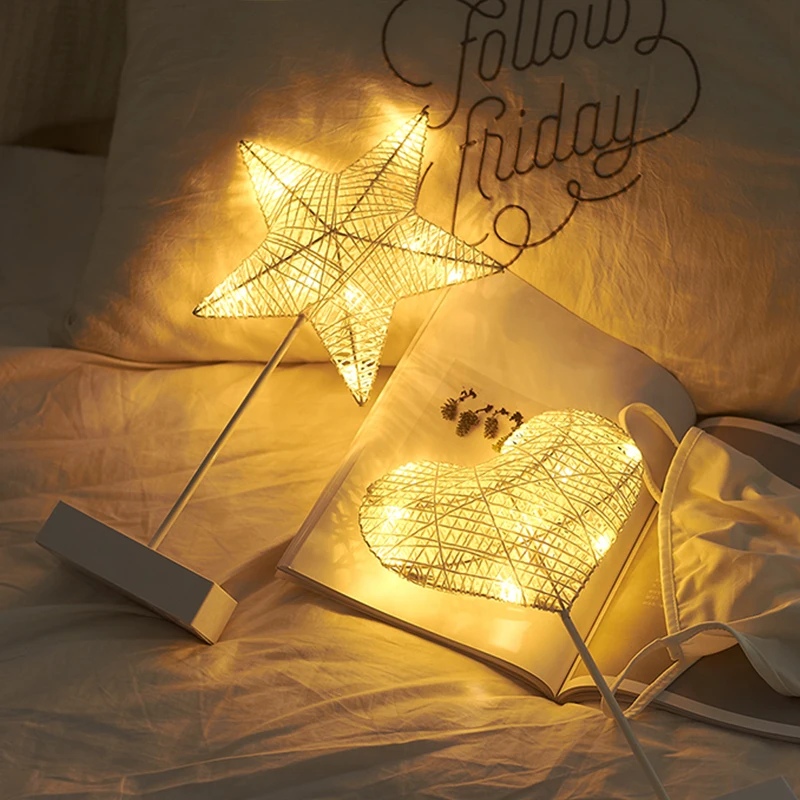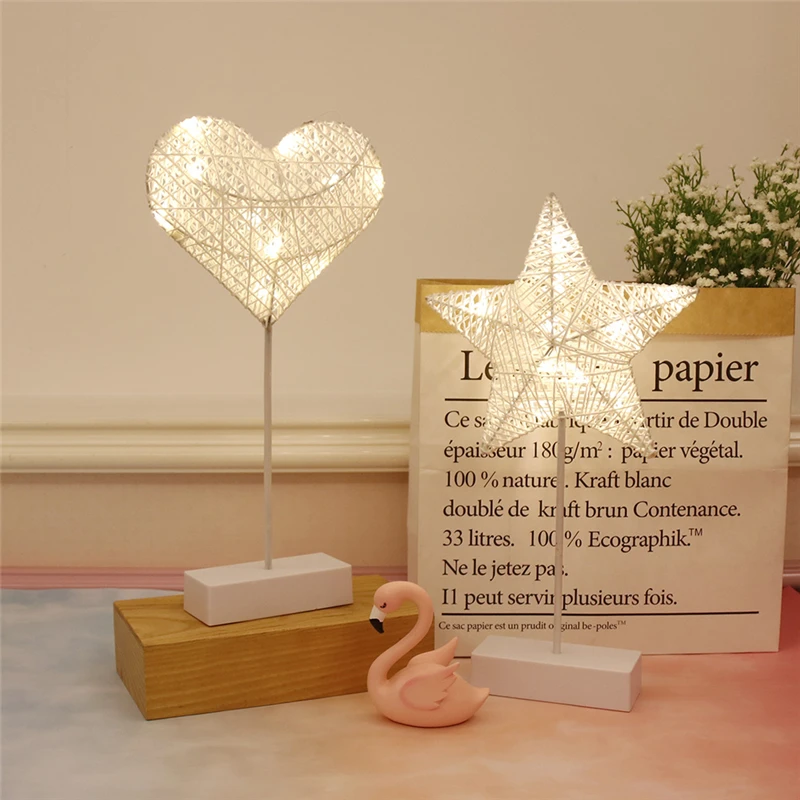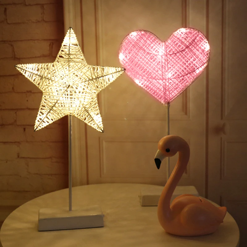 Special Offer Noc lekka kreatywna LED Heart Star kształt drzewa trawa tkane rattanowe zasilanie bateryjne lampka nocna prezent światła do dekoracji na przyjęcie Discount 40% Today!