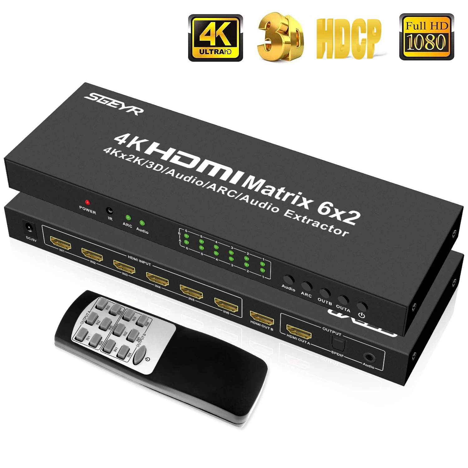 Special Offer Przełącznik 6x2 macierz hdmi 4K x 2K 6 in 2 out macierz hdmi monitory przełącznik Splitter z pilotem SPDIF + 3.5mm ekstraktor audio Discount 25% Today!