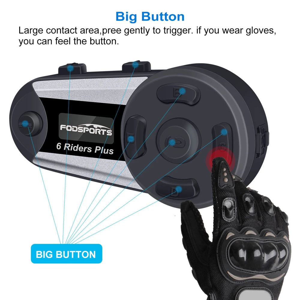 Product Name: V6 Plus 6 zawodników interkom motocyklowy kask z zestawem słuchawkowym bezprzewodowy BT pełny dupleks Bluetooth Intercomunicador Interphone FM OLED ekran
