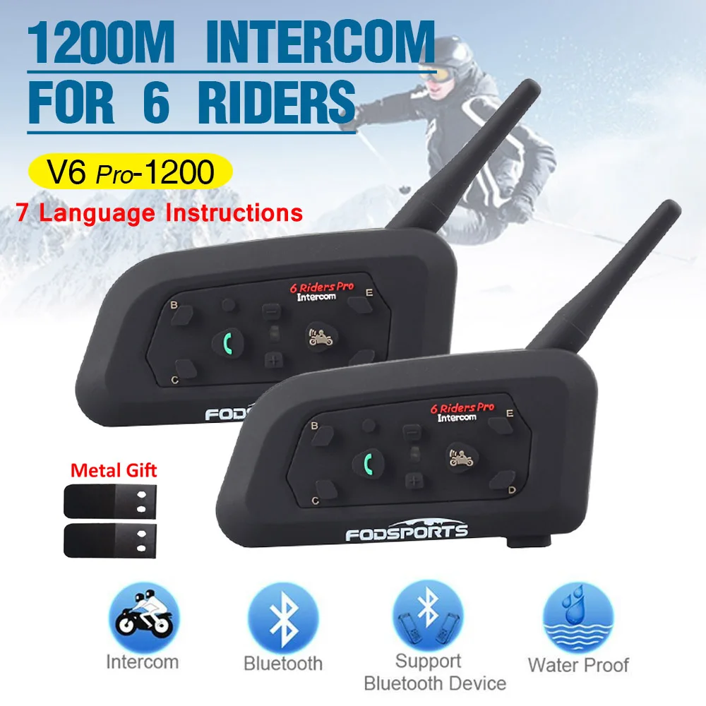 Product Name: 2 sztuk V6 Pro bt interphone 1200M moto rcycle kask bluetooth z interkomem intercomunicador moto zestaw słuchawkowy do 6 jazdy IPX5 MP3 GPS