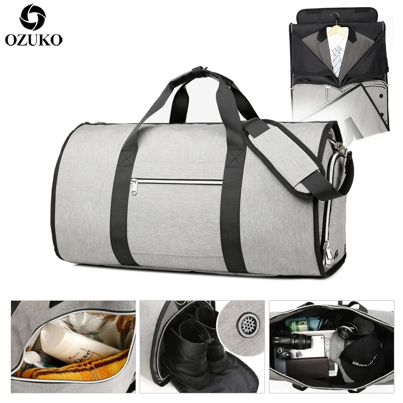 Special Offer OZUKO duża pojemność mężczyźni torba podróżna wielofunkcyjna do przechowywania bagaż podręczny torby na podróż wodoodporna worek marynarski z kieszenią na buty Discount 41% Today!