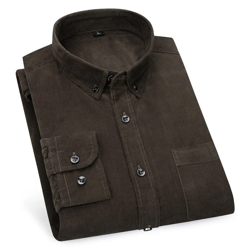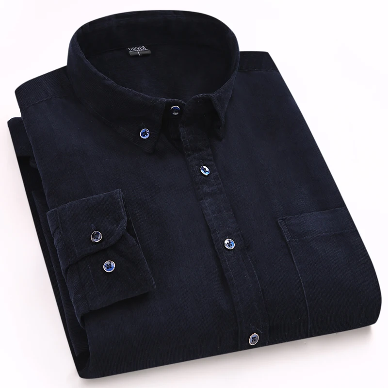 Special Offer New arrival bawełniany sztruks długi guzik na rękawie kołnierz jakość ciepły łatwy w pielęgnacji regularny krój prosty biznes mężczyźni koszule na co dzień Discount 44% Today!