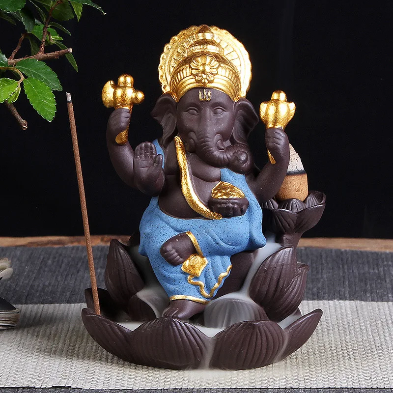 Special Offer Z głową słonia bóg Ganesha fioletowy piasek lotos typ kadzidło z przepływem zwrotnym palnik posąg buddy tajlandia indyjski buddyjski kadzidełka Discount 30% Today!