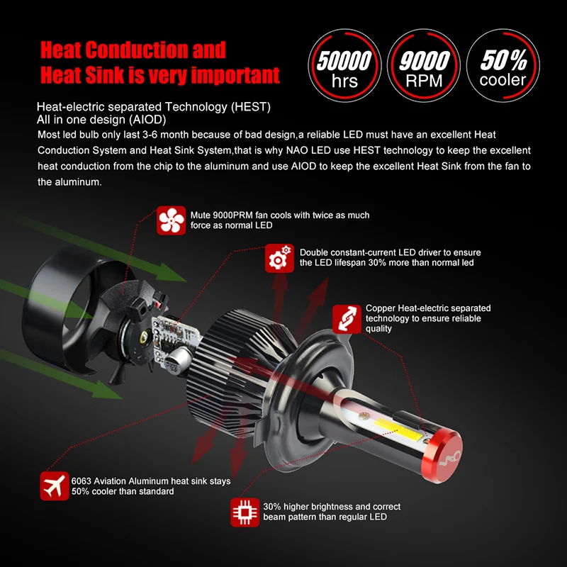 Product Name: Krajowy urzędnik zatwierdzający H7 reflektory led H4 samochodowa żarówka led H11 H9 H1 H3 HB4 HB3 9005 9006 H8 H27 9004 H13 881 880 72W 8000LM 12V światła biały 6000K K1
