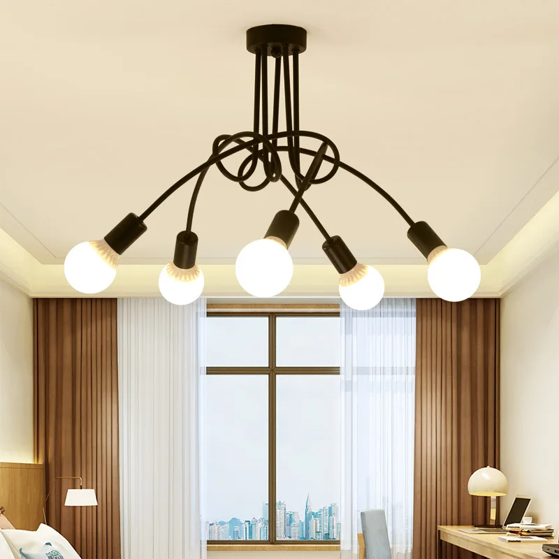 Product Name: Loft w stylu nordyckim żyrandol, Vintage przemysłowe lampy sufitowe, lustre люстра, gięcie osobowości dla domu i sklepu, E27, 3 5 głowice