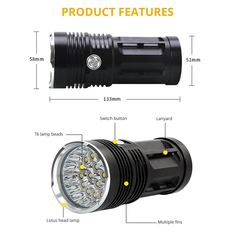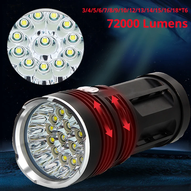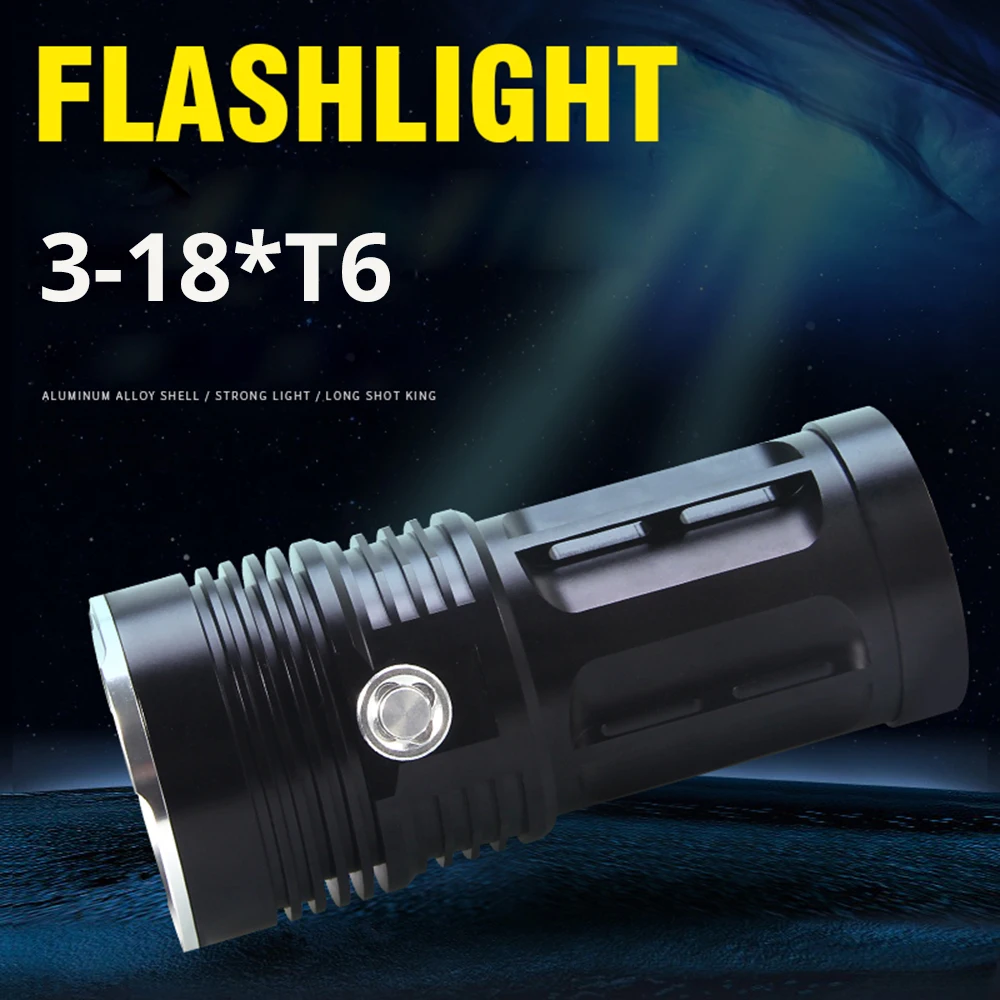 Product Name: Najmocniejsza latarka LED 3to18 * T6 latarka LED latarka taktyczna 3 tryby Linterna przenośna lampka światła przez 4*18650