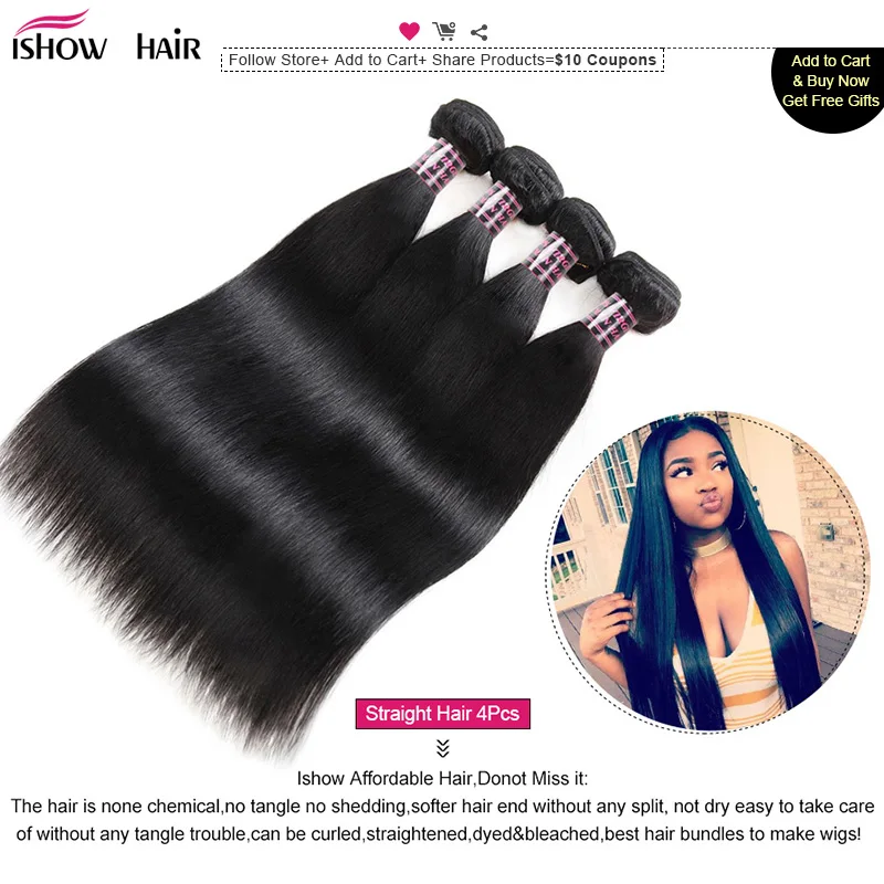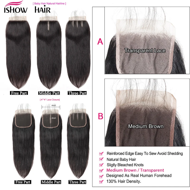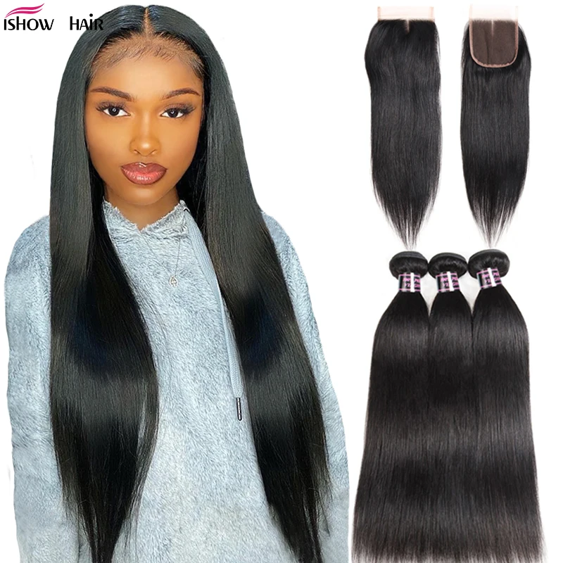 Product Name: Ishow pasma prostych włosów z zamknięciem brazylijskie włosy wyplata wiązki z zamknięciem 100% wiązki ludzkich włosów z zamknięciem Non Remy
